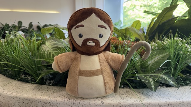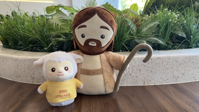 Hình tượng Chúa Giêsu trong vai trò người mục tử nhân lành được tái hiện qua mẫu búp bê vải mềm mại, mang đến cho bé cảm giác an toàn tuyệt đối:
